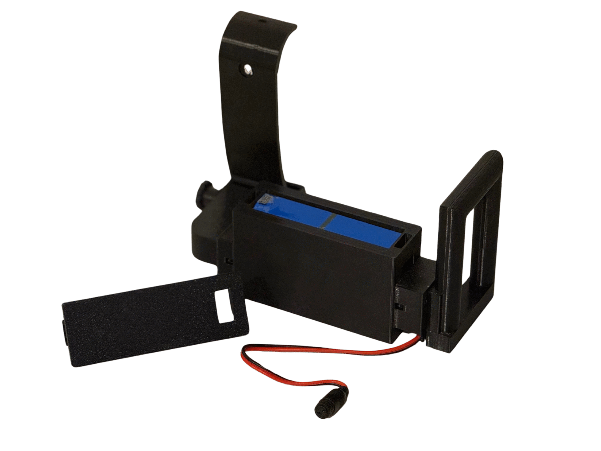 Il supporto contiene uno scomparto apposito per ospitare una batteria esterna, garantendo un’installazione facile e stabile.